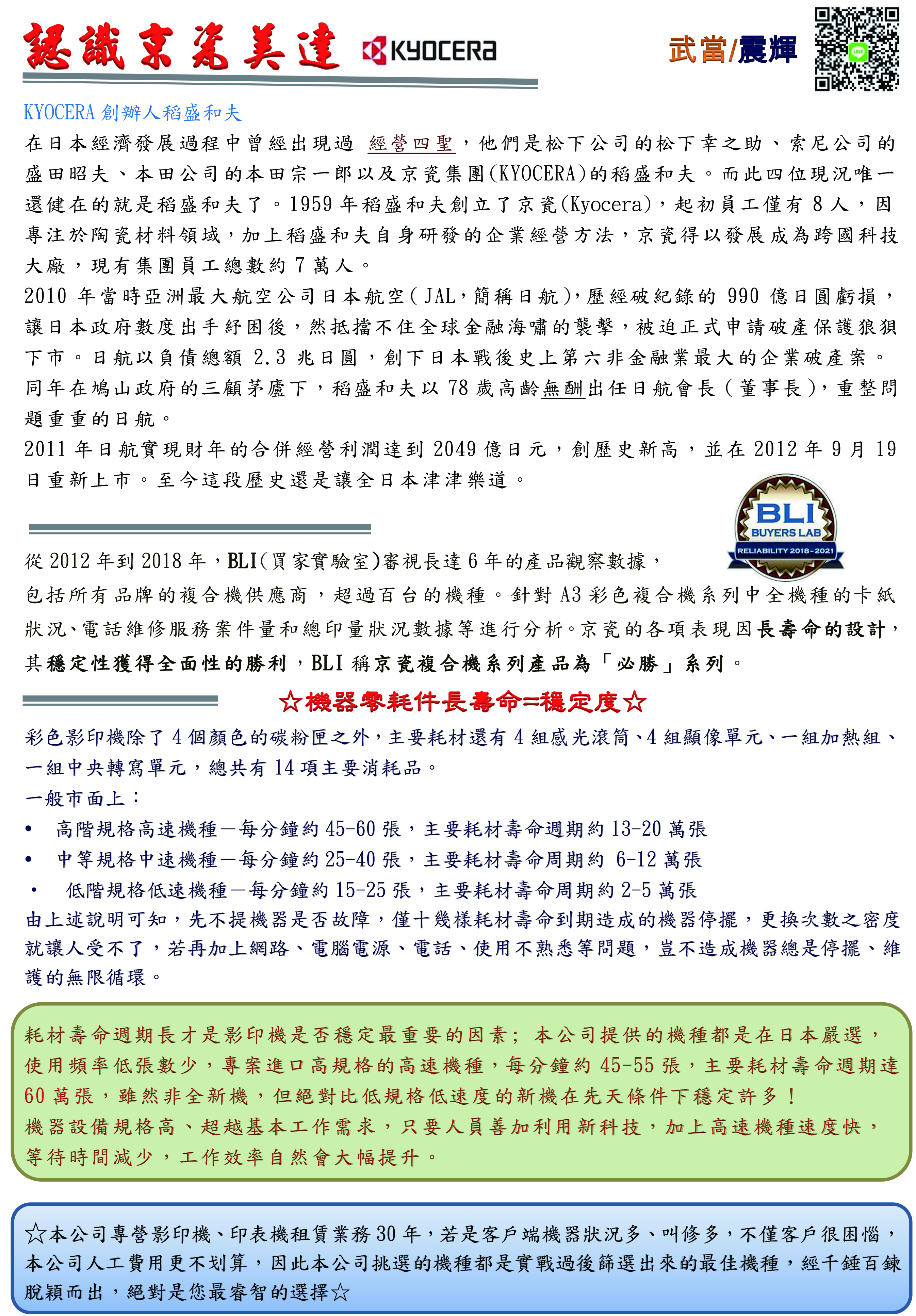 本公司提供經嚴選,各種規格的京瓷多功能事務機/印表機。