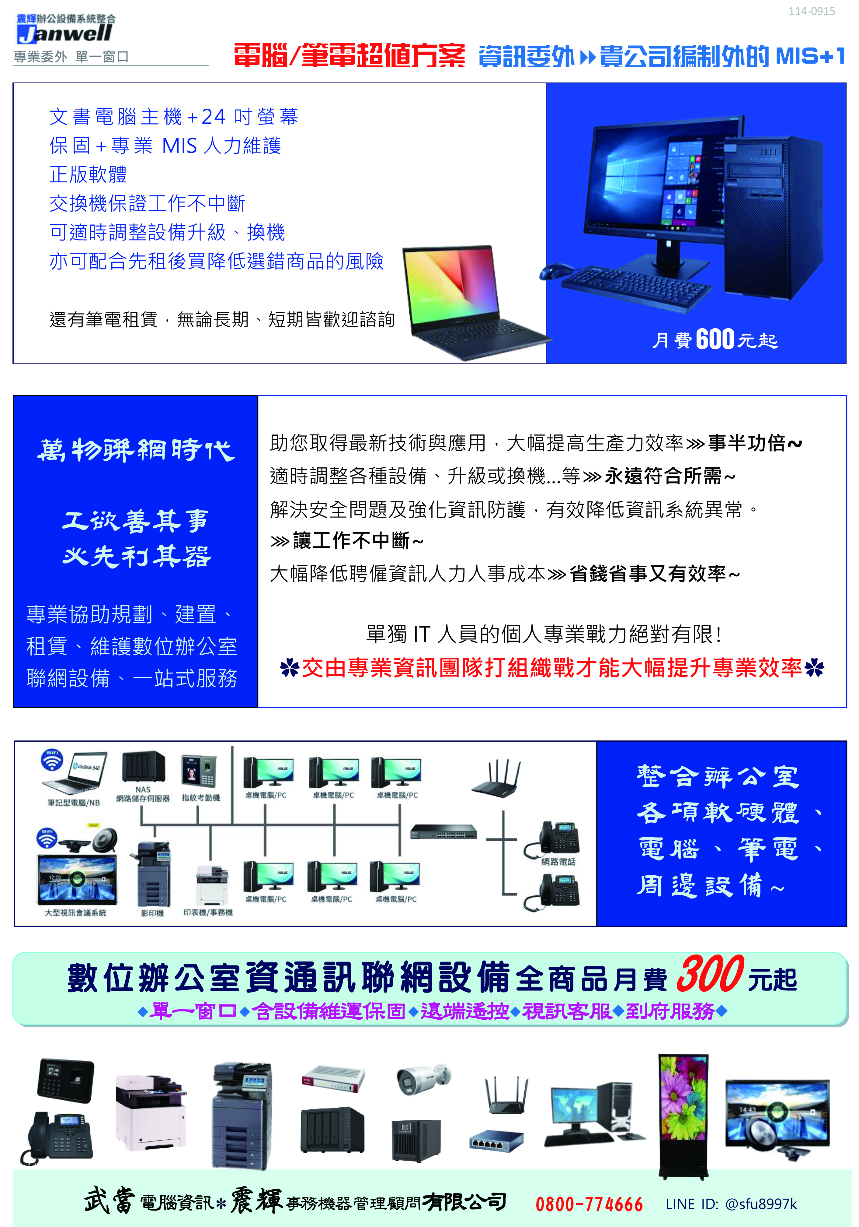 ✿ 文書筆電/電腦主機+24吋螢幕: 保固+專業MIS人力維護 600元起